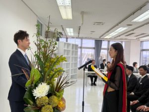 新入生代表あいさつを行った、ゴパリ ママタさんは「何事(なにごと)も積極的(せっきょくてき)に取り組める、強い心(こころ)を持って勉強や就職活動をがんばります」と今後の抱負(ほうふ)を語(かた)ってくれました^_^