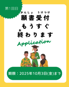 1回目の願書(がんしょ)の締めきりが、10月3日(金曜日)までです♪